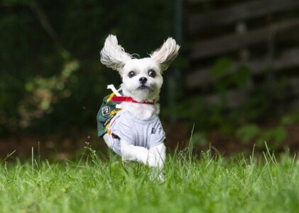 お耳や手足がピョーンとウサギのようになっている子がいたり、一瞬誰だかわからないお顔になっている子もいたり♪わんこたちの楽しい瞬間を、湯山繁カメラマンが切り取ってくれています。
