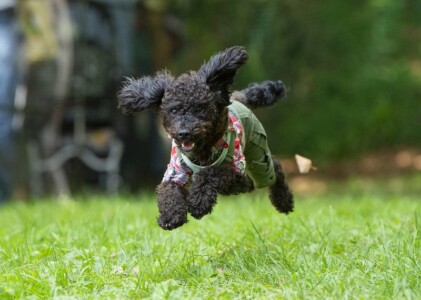 お耳や手足がピョーンとウサギのようになっている子がいたり、一瞬誰だかわからないお顔になっている子もいたり♪わんこたちの楽しい瞬間を、湯山繁カメラマンが切り取ってくれています。