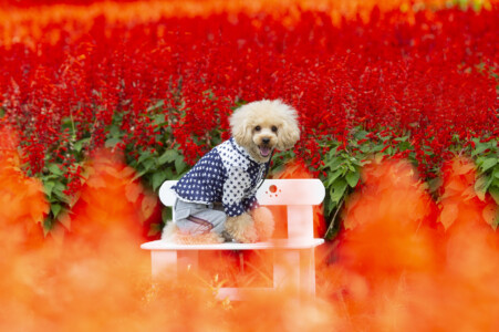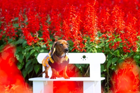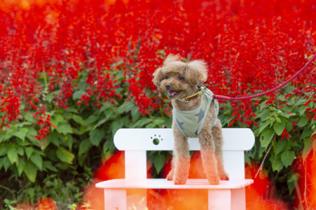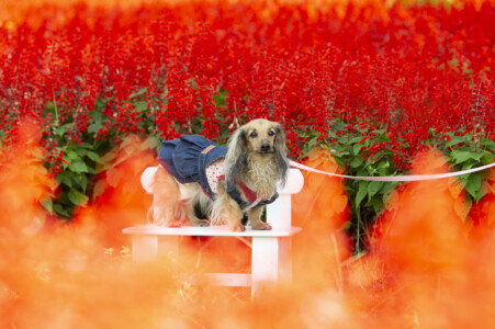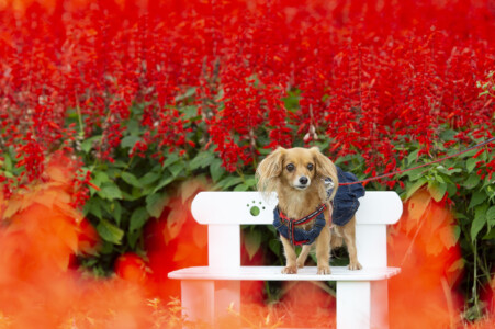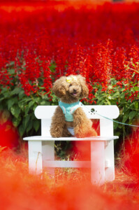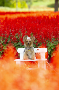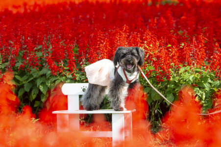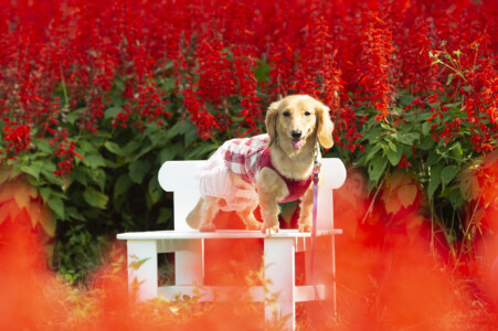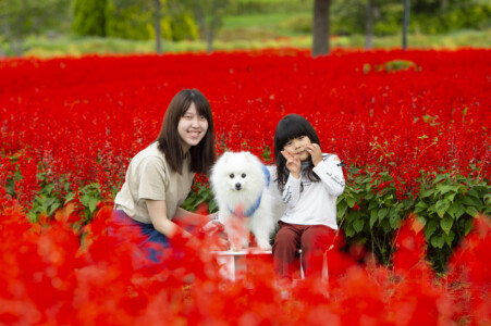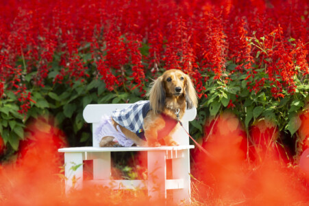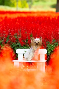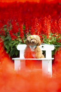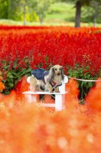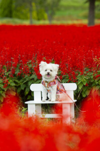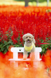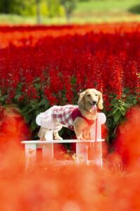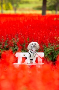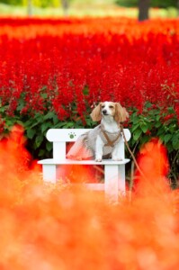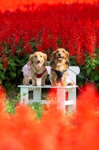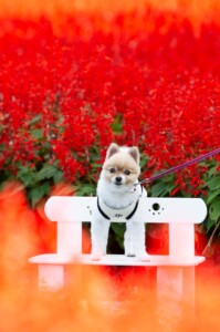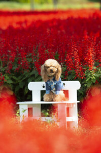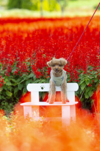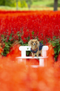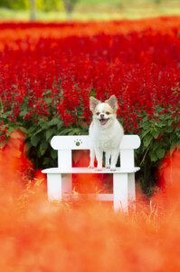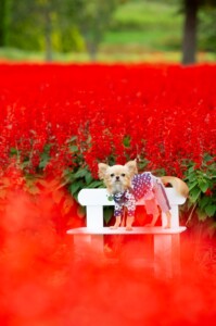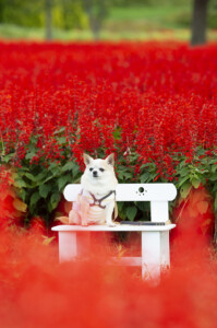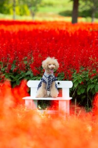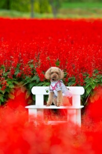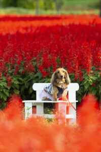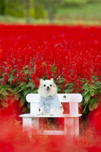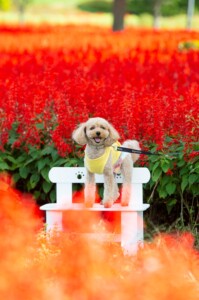 燃えるように真っ赤なサルビア×可愛いわんこ=激映えしているお写真ができあがりました~!!