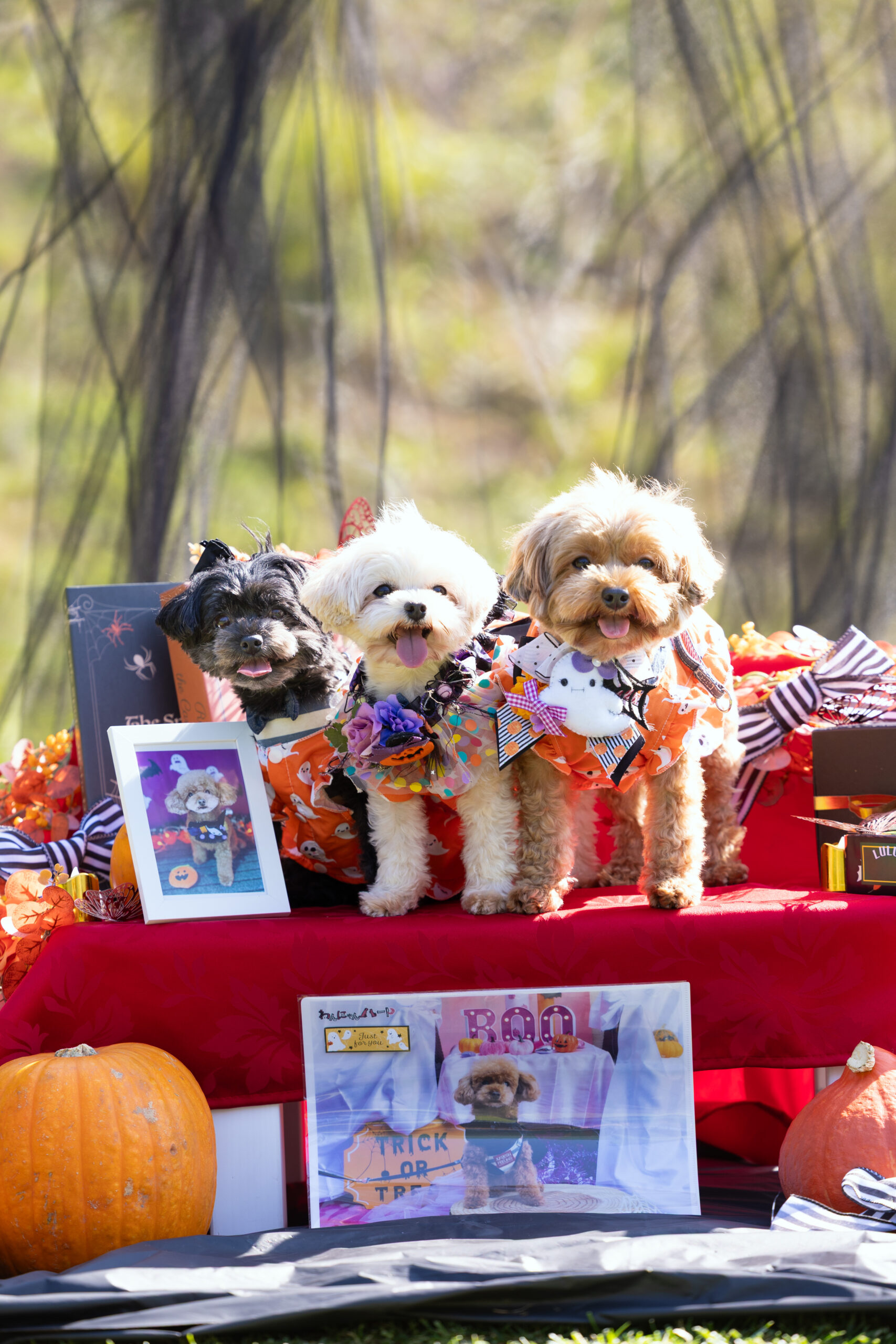 鮮やかなパープルにわんこたちが映え映えっ♪ハロウィン気分が一気にアガるお写真ばかりです。中にはヤンキーも……いる⁈@pe…