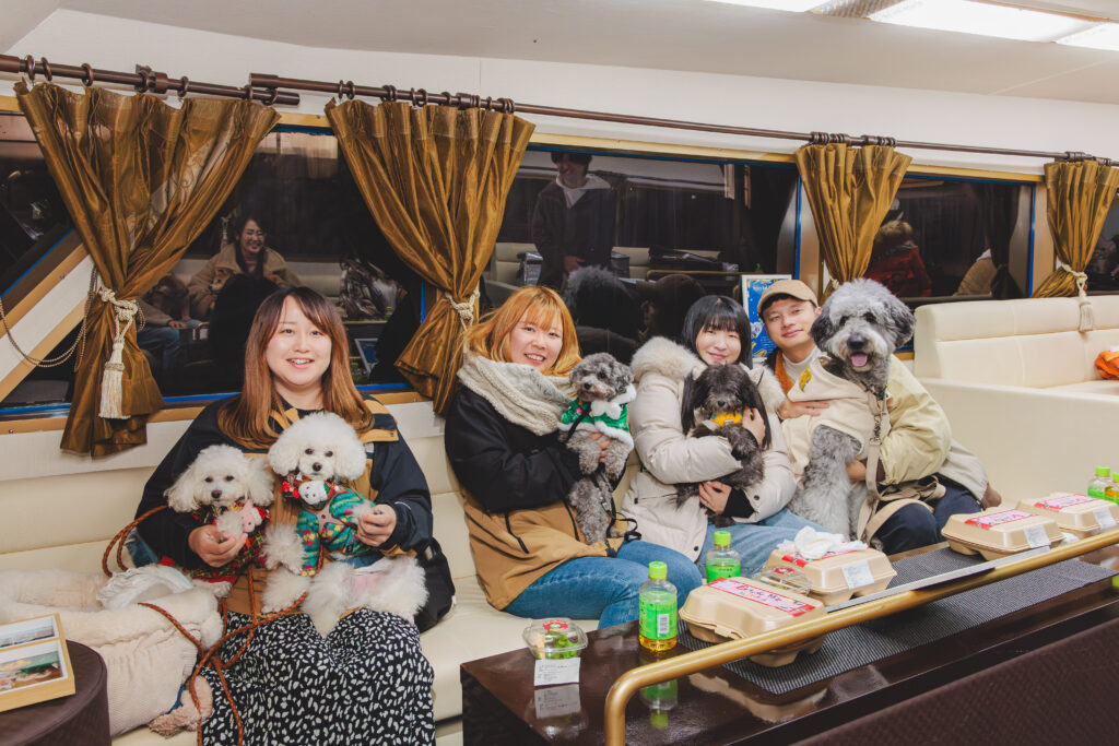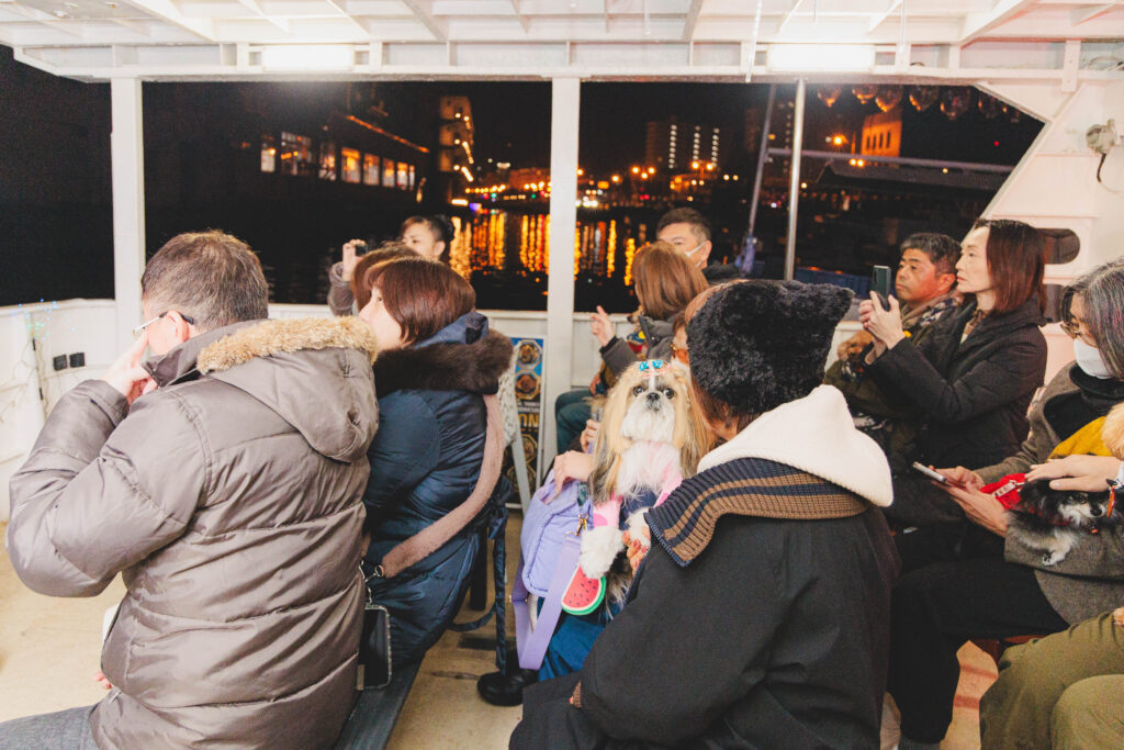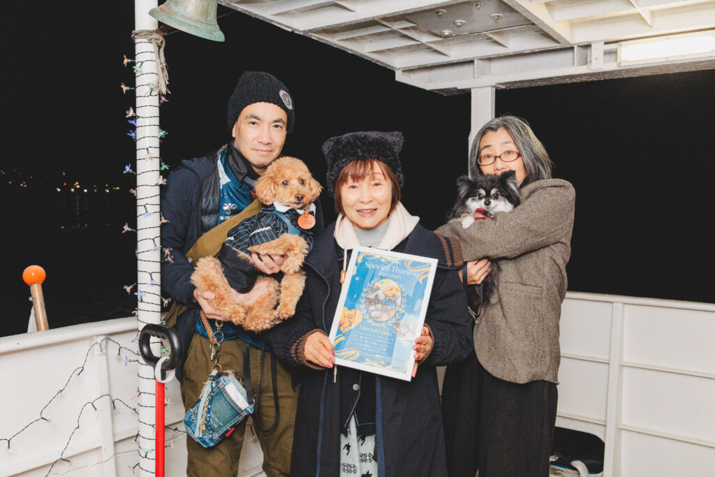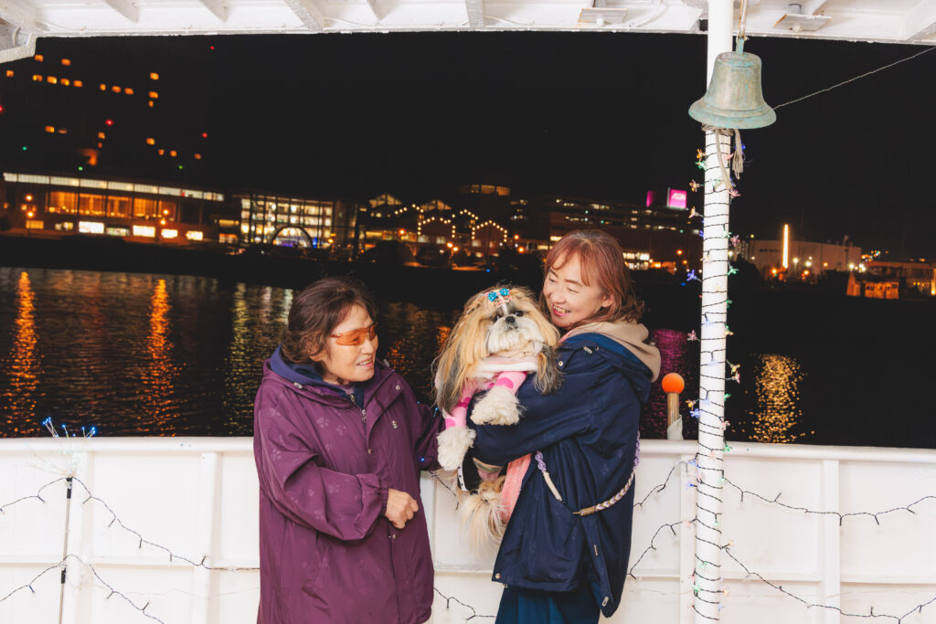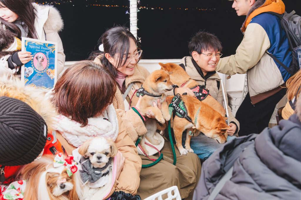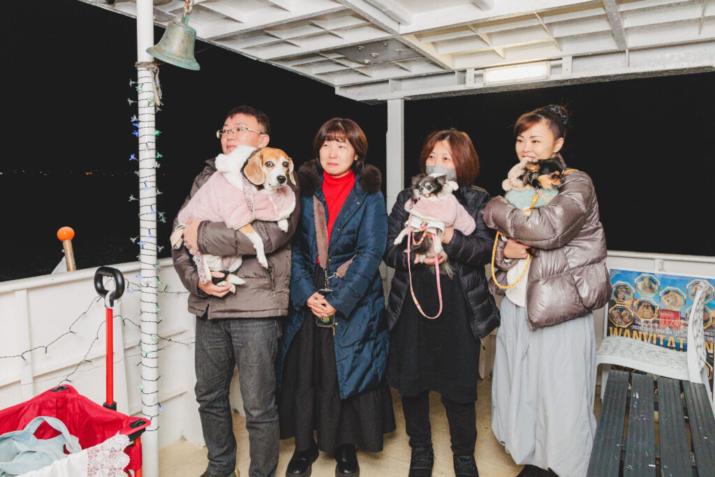 この一年、わんにゃんハートを特に支えてくれたわんことご家族にお声がけし、みなさんと特別な時間を共有するわんビテーション。今年は11月24日に開催し、2部制に分かれて小樽港でナイトクルーズを楽しみました。