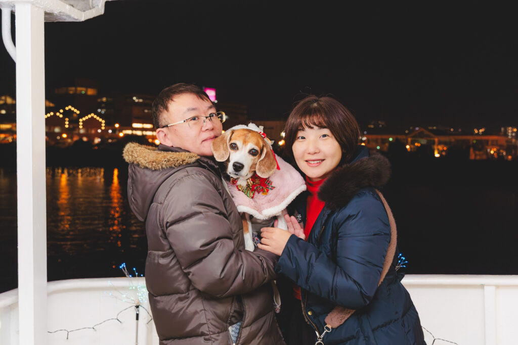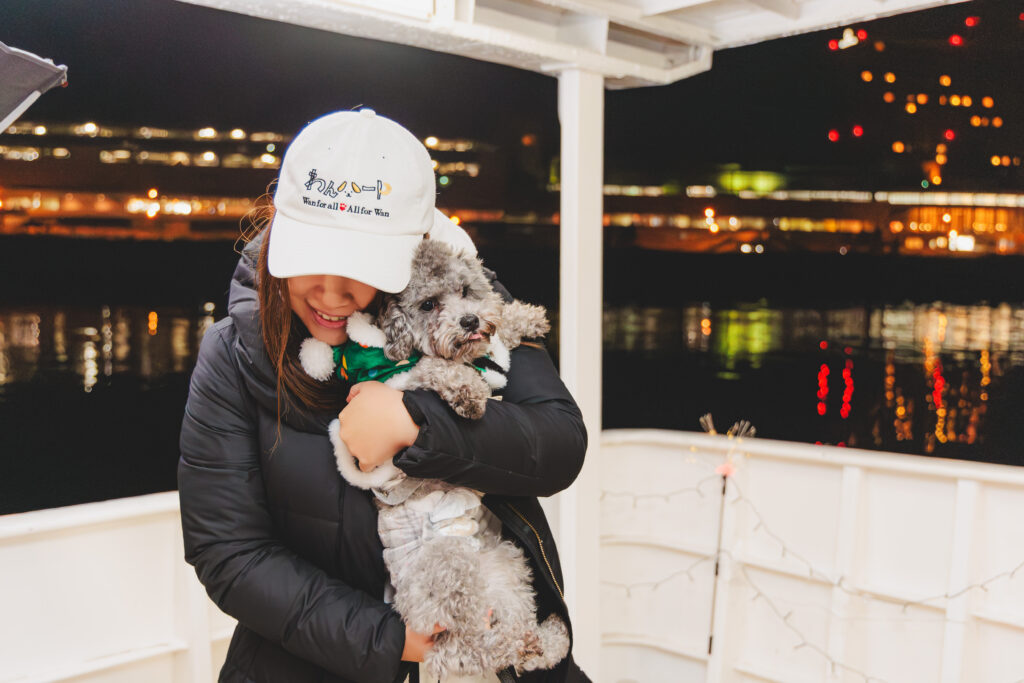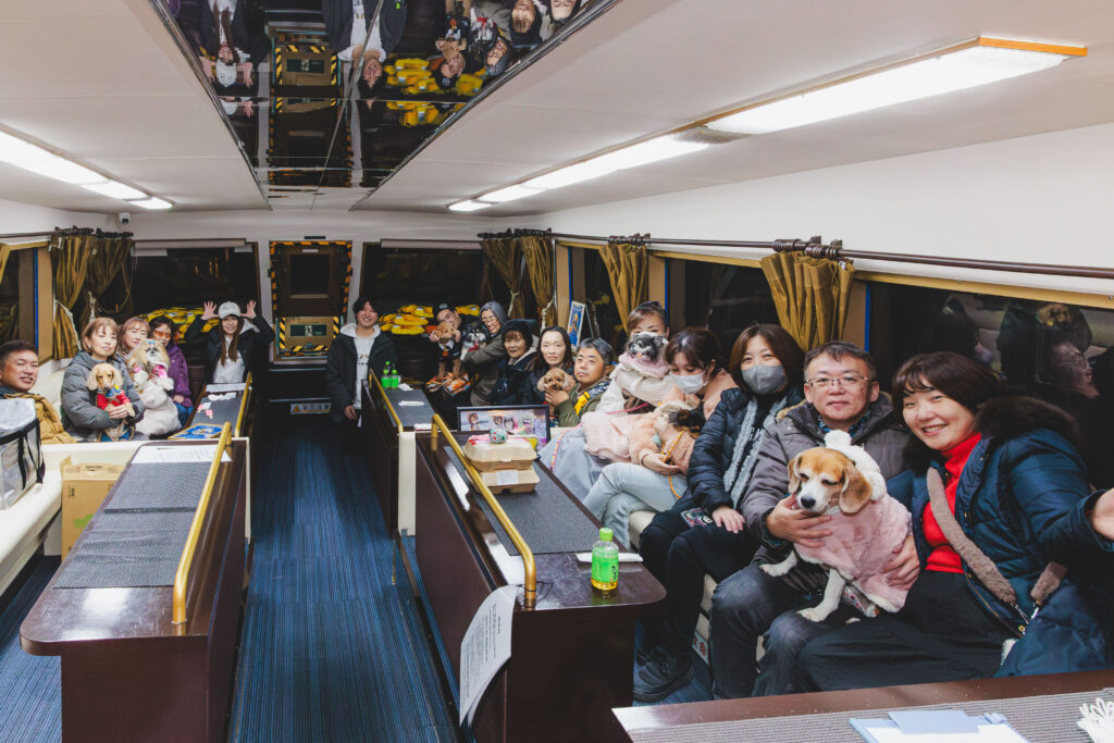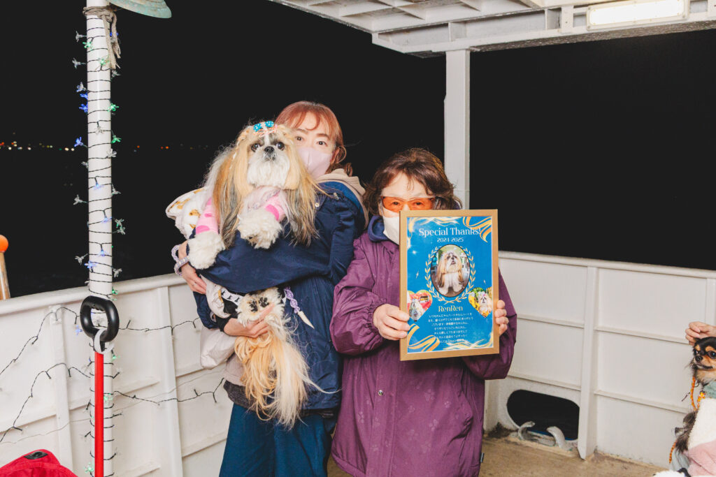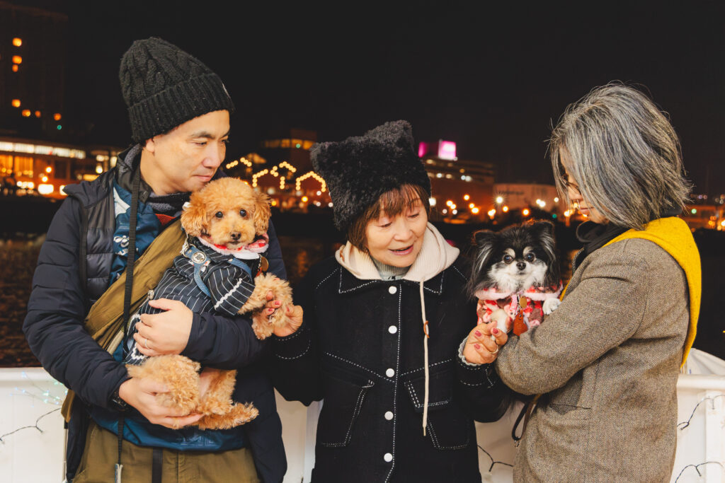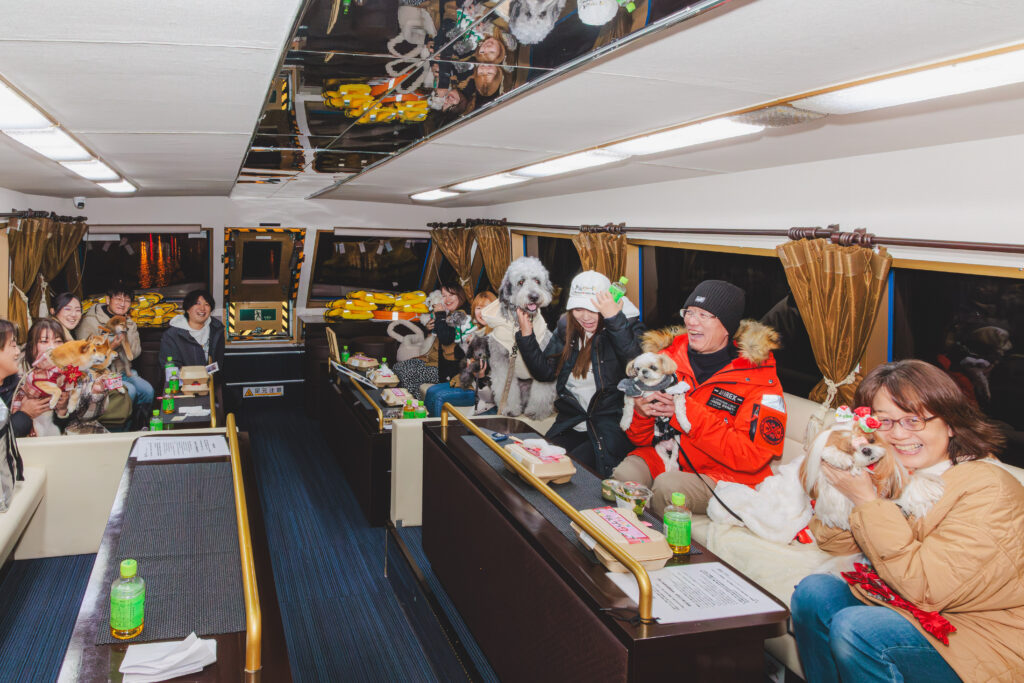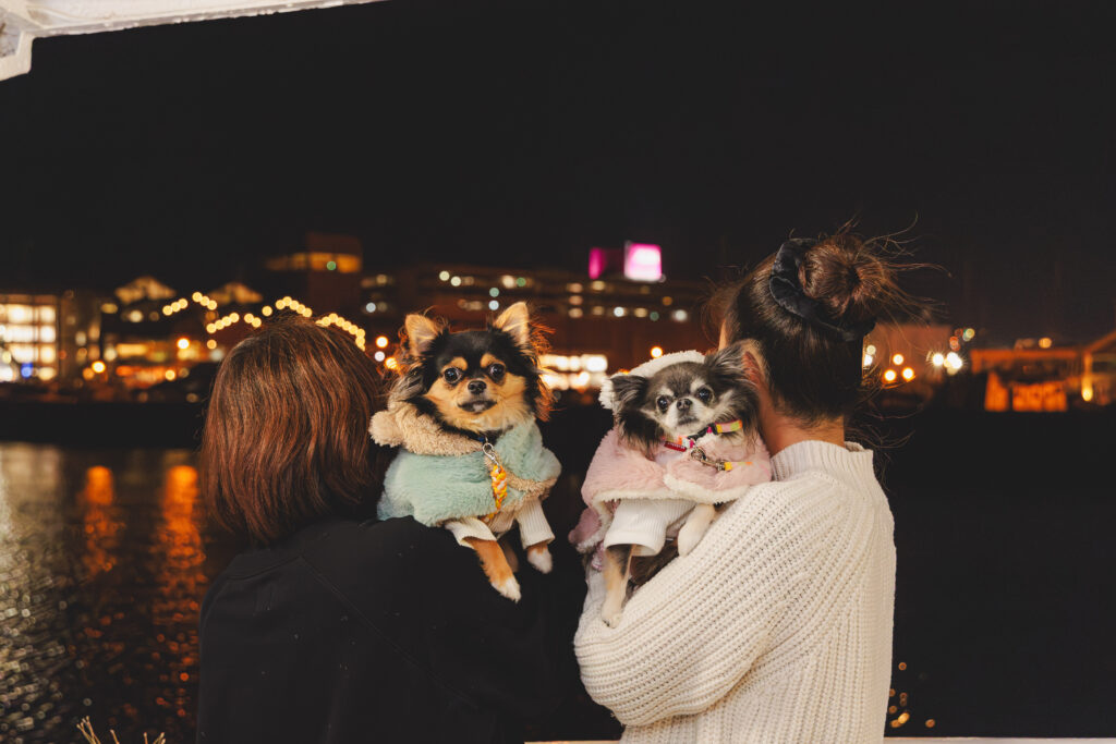 この一年、わんにゃんハートを特に支えてくれたわんことご家族にお声がけし、みなさんと特別な時間を共有するわんビテーション。今年は11月24日に開催し、2部制に分かれて小樽港でナイトクルーズを楽しみました。
