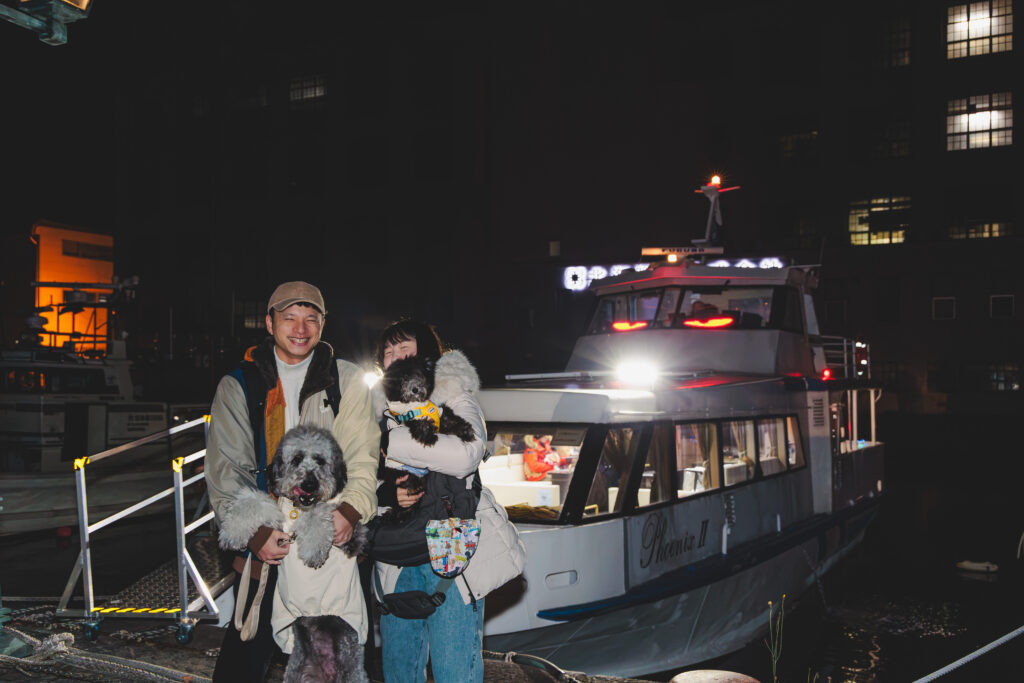 船の舵取りやサポートなど、全面協力してくださったのは、わんハートでもおなじみのフェニックスさん。愛犬家の方々が運営しており、わんこファーストで安心安全な船旅を約束してくれます。
