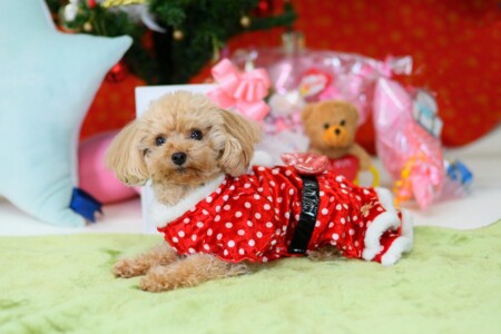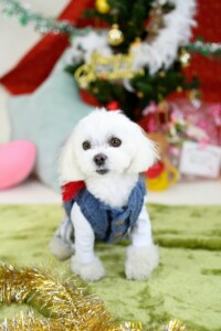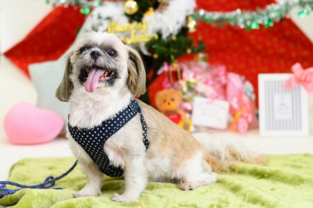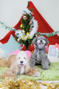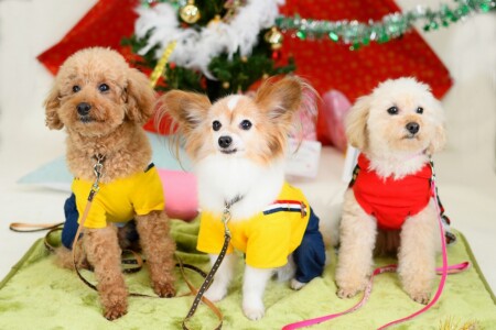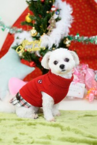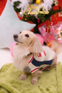 一足先にわんこたちがツリーの前で撮影し、会場はいっきにクリスマスモードに!