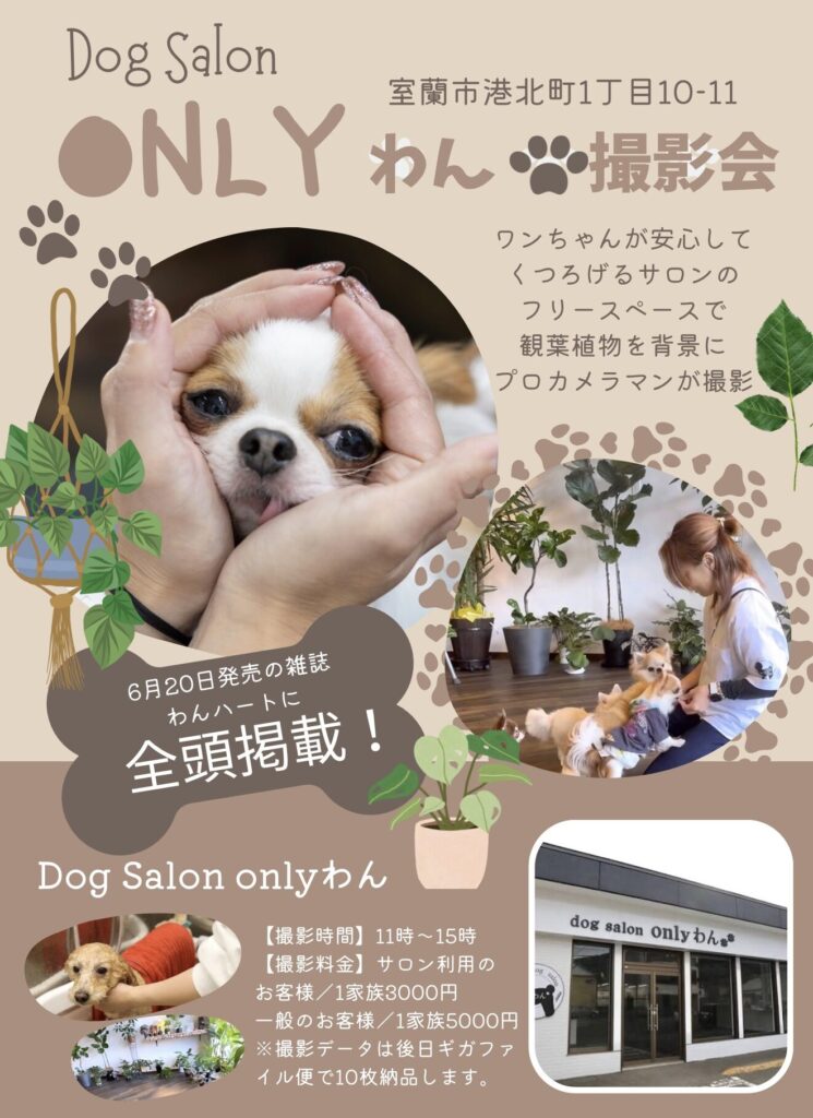 現在発売中のわんハートVol.22にも掲載中のわんこ思いなサロン「onlyわん」さんで初めて撮影会を開催させていただきます。