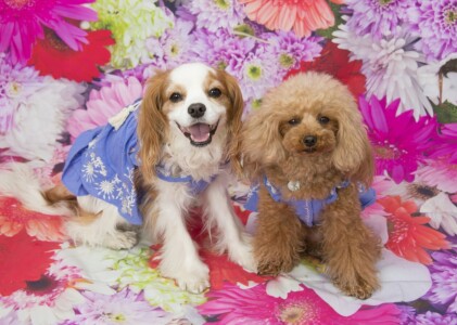 春らしく可愛らしい格好で着てくれるわんこはもちろん、ワイルドな大型犬もギャップが素敵でした(^o^)v