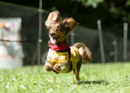お耳や手足がピョーンとウサギのようになっている子がいたり、一瞬誰だかわからないお顔になっている子もいたり♪わんこたちの楽しい瞬間を、湯山繁カメラマンが切り取ってくれています。