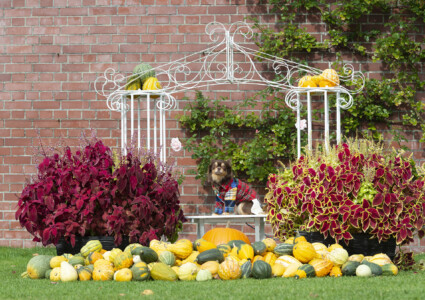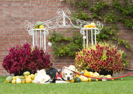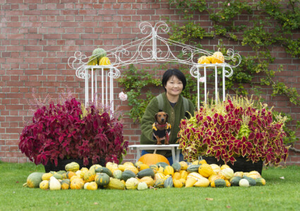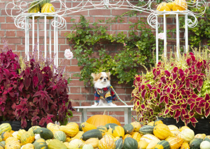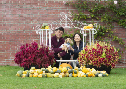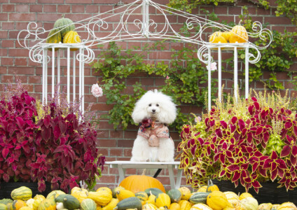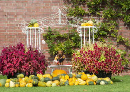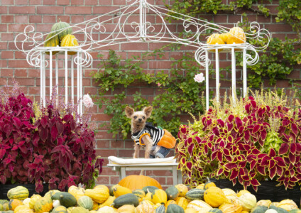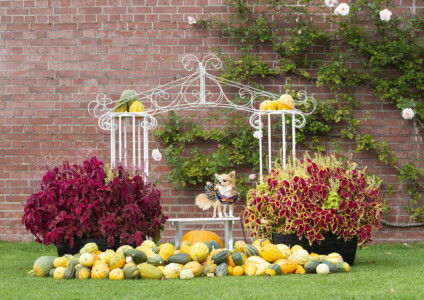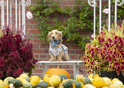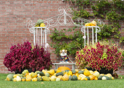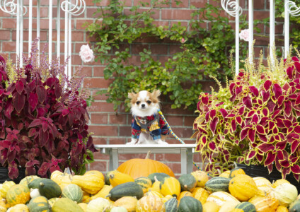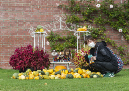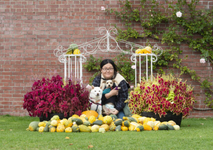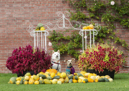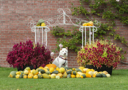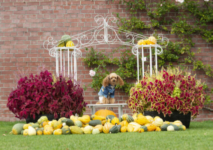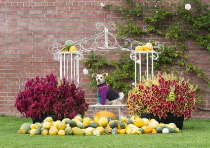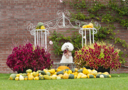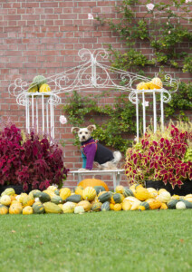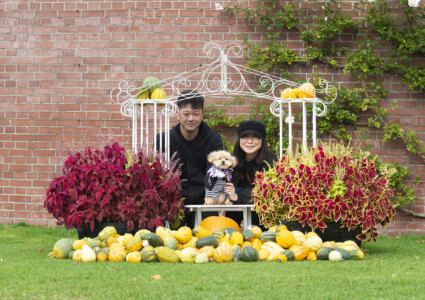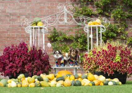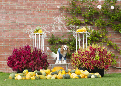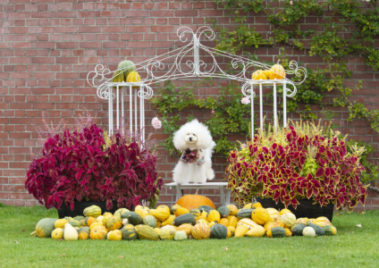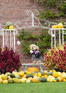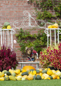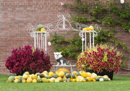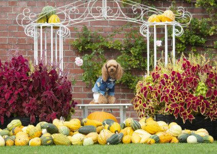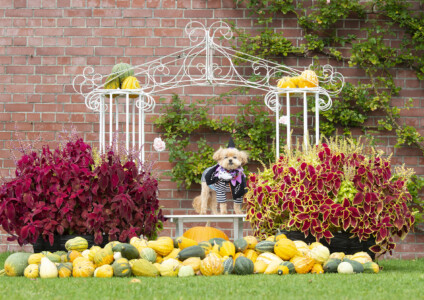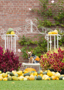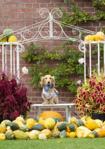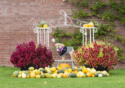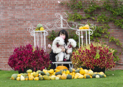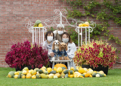 先日開催した「ベストわん!ライフフェスティバル!!」の撮影会。ゆにガーデン内にある「フレグランスガーデン」のレンガを背景に、オバケかぼちゃをいっぱい並べて撮影しました。秋らしさもハロウィン感も詰まった〝大人カワイイ〟セットに、たくさんのわんこが集まってくれました。