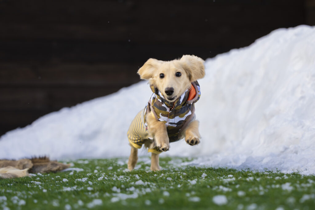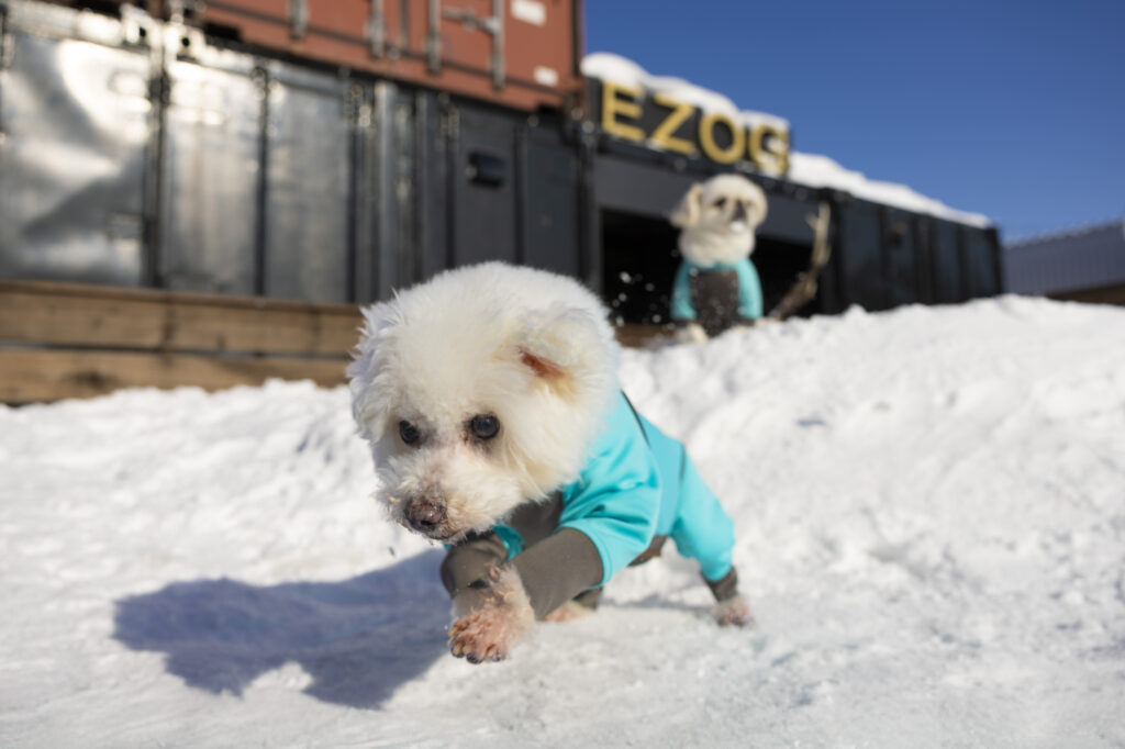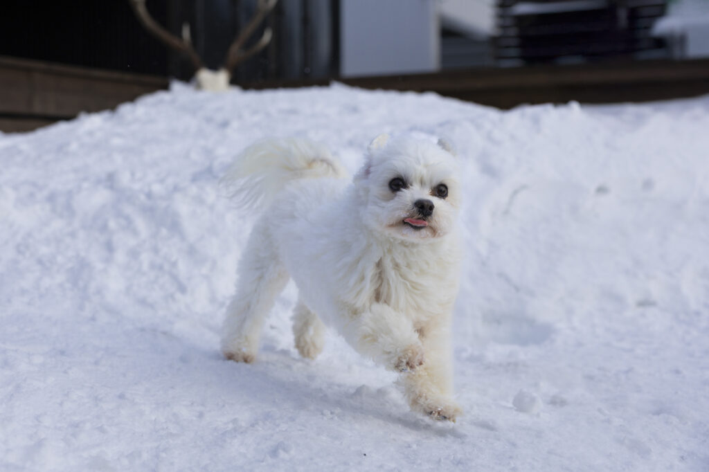 いつも以上に、わんことカメラマンと飼い主さんが息を揃えて撮影することになる雪中撮影。撮影中も楽しく、お写真も躍動的になるので、とってもオススメです。