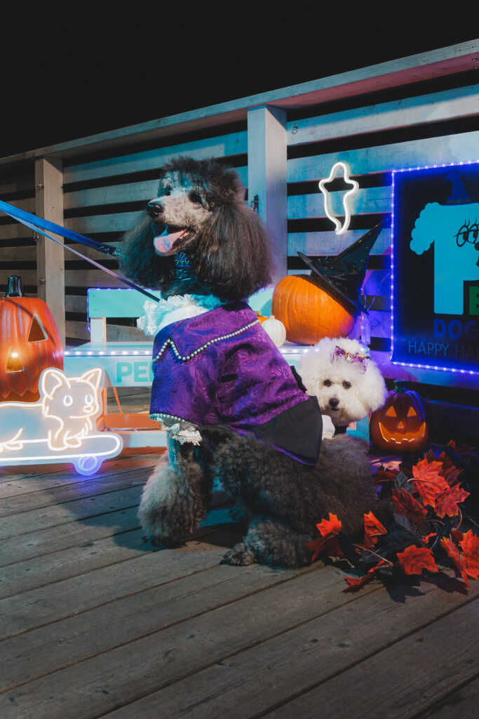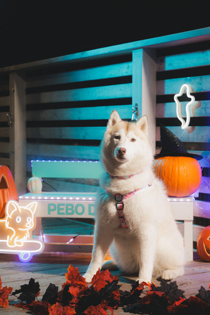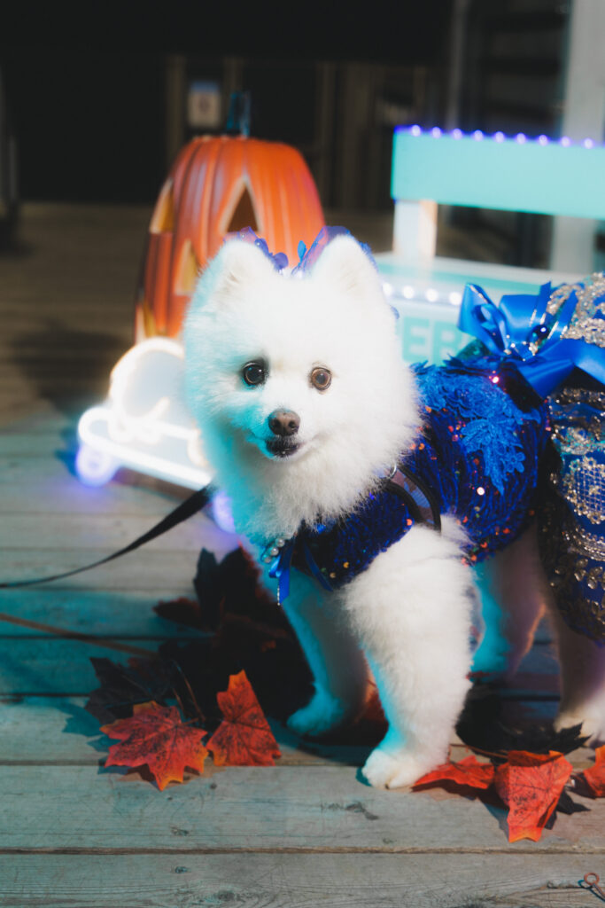 ネオンのきらめきと青いストロボに照らされて、ちょっぴりホラー感のあるハロウィン撮影会になりました。