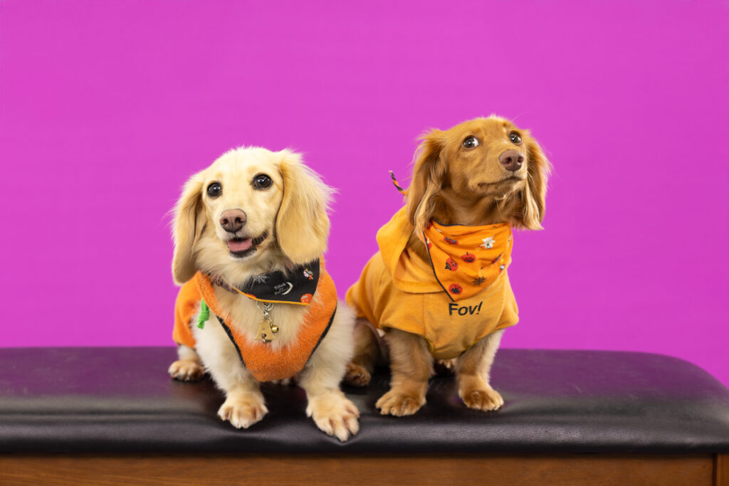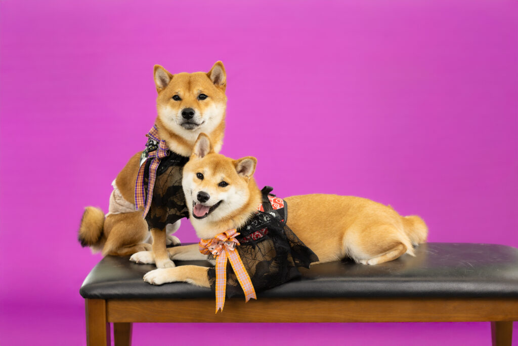 鮮やかなパープルにわんこたちが映え映えっ♪